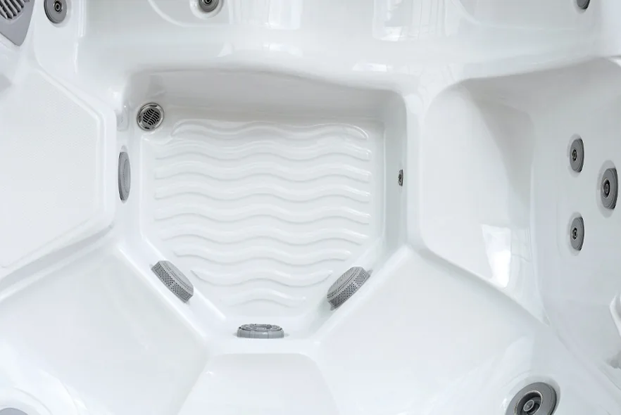 The Cypress has square footprint at 2.13 m x 2.13 m, with a 5-seat plus 1 lounger layout. In practice it’s specified as a recommended 4-person tub, so it feels spacious and comfortable, especially for couples who love having the lounger option during a stay.